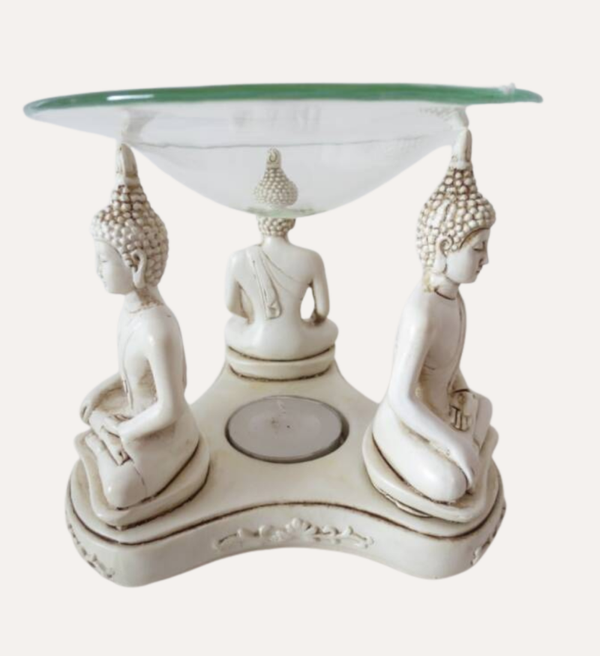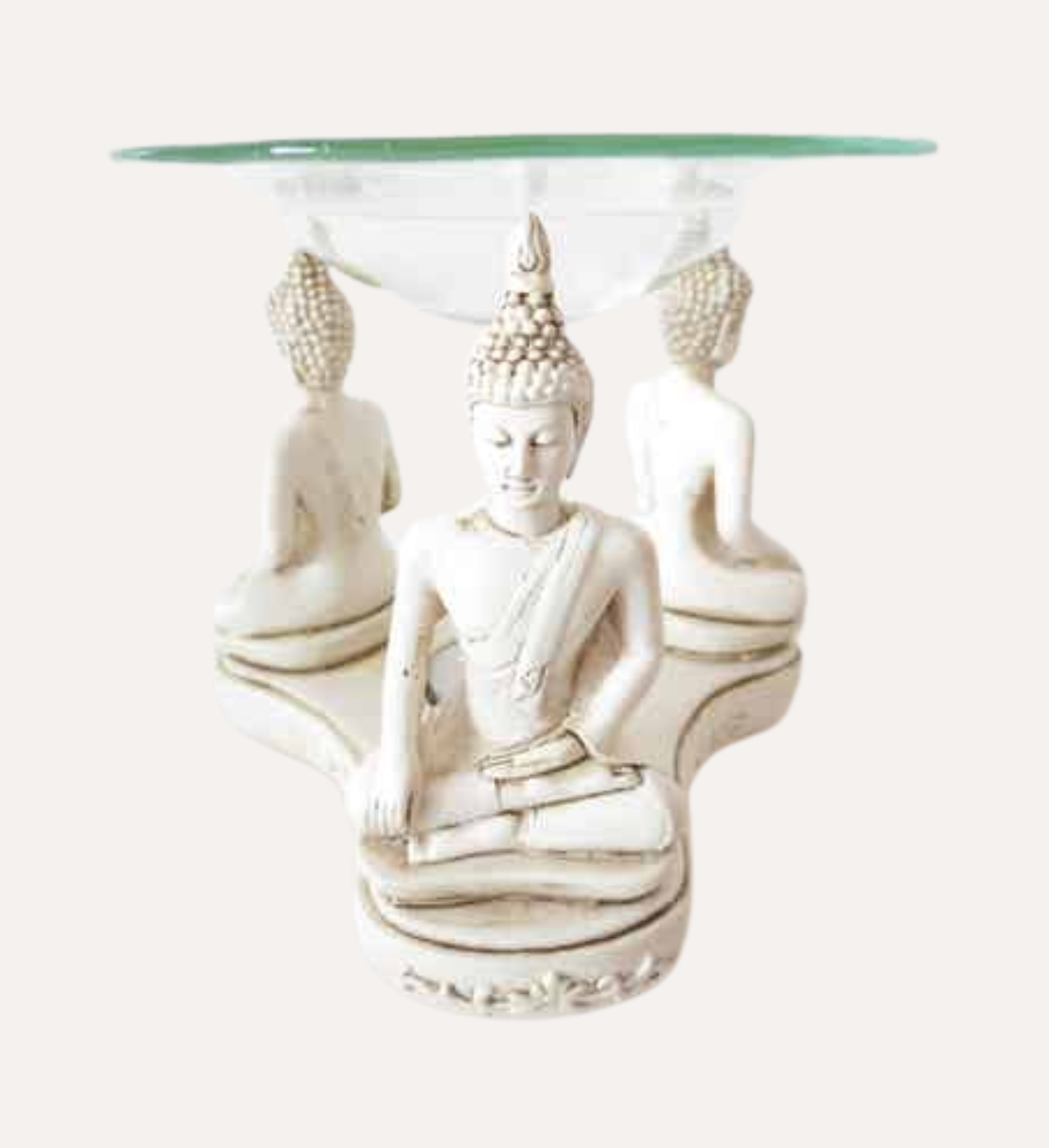 Breng rust, balans en een vleugje oosterse elegantie in huis met deze luxe aromabrander, geïnspireerd op de serene kracht van de Boeddha. Drie Thaise Boeddha’s vormen een symbolische kring, verwijzend naar verlichting, verbondenheid en innerlijke harmonie.