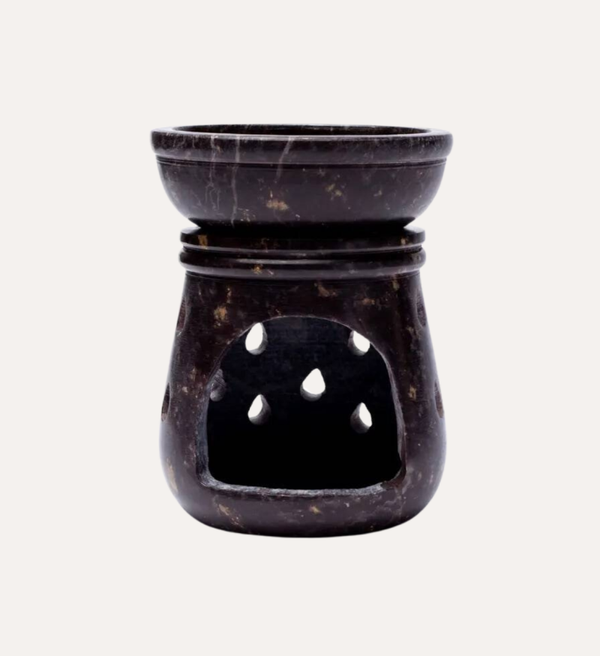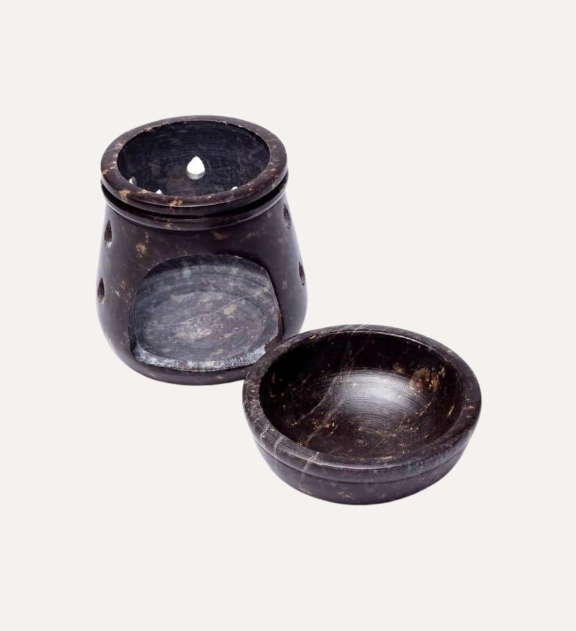 Elke brander is uniek — zeepsteen is een natuurproduct en kan variëren van diep zwart tot gemarmerd bruin, wat elke brander een authentieke uitstraling geeft.